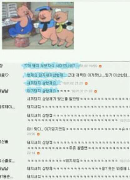 ??저 돼지 부모자식 사이었나요? 형제요 돼지새끼삼형제....근데 제목이 이게맞나...뭔가 이상한데.... 새끼돼지 삼형제요... 아기돼지 삼형제요ㅋㅋㅋㅋ