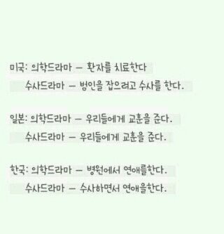 시트콤 :웃기면서 연애 사극 :옛날사람들이 연애 학교드라마 :학교에서 연애 요리드라마 :요리하면서 연애