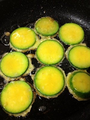 부침가루 묻히고 살짝 털어내서 계란옷 입히고 부친 후에 키친타올로 기름기 제거해주는
