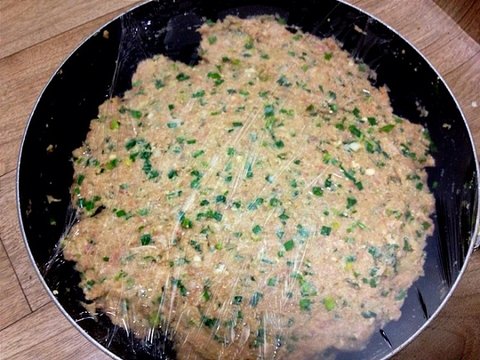 양파 부추 쪽파 부침가루 돼지고기를 한 뭉탱이 집어넣으니 양이 너무 많아짐