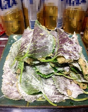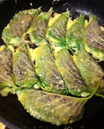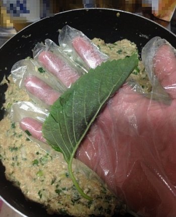 깻잎 씻고 그 안에 반죽 채워서 접어버림