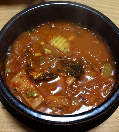 하기 전에 전 부치다가 배고프면 짜증나니깐 힘들게 살려낸 뚝배기로 김치찌개 한그릇 먹고