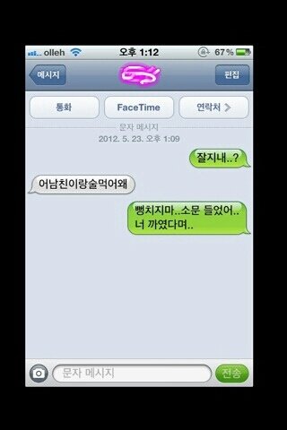 자작같음 ... 잘지내? 하면 보통 응 반가웡너도 잘지내? 이런 안부를 전하는 말을 하는게 당연한듯한데... 쌩뚱맞게 남친이랑 술먹었다니..