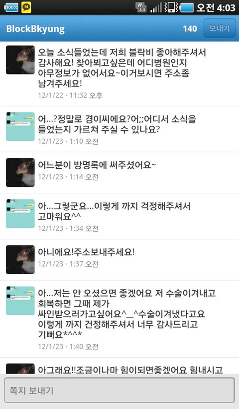 들에게 트위터를 날렸죠 답은 없더라구요 하하;;얼마 지나서 트위터로 쪽지가 와있었어요 경이씨(박경)