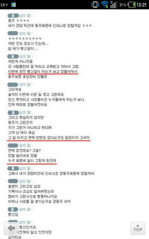 3. 인피니트 맴버 동우차별및 욕.(캡쳐본 첨부합니다)