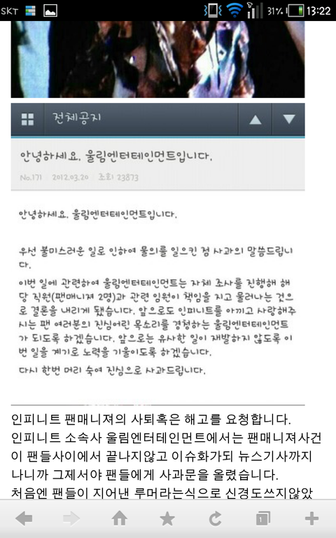 하지만 인피니트 팬매니저는 가교역활은 커녕 비인간적인 행동을 하고있습니다.