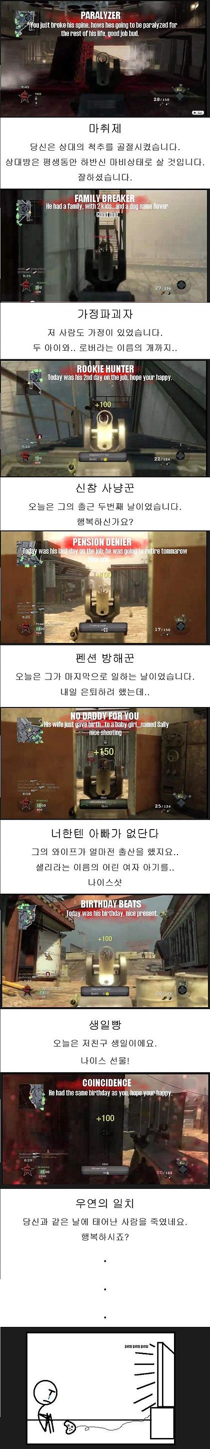 저런 게임 때문에 애들이 어렸을때부터 엄청 영향받는듯... 항상 그런건 아니겠지만 총격사건들 보면 어렸을때 저런 영향 받아서 그런건 아닐까?