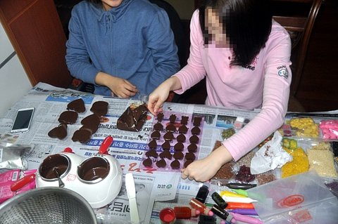 저건 절 도와주고 있는게 아니라 자기네들 초콜릿 만드는 중이에요 .......하..