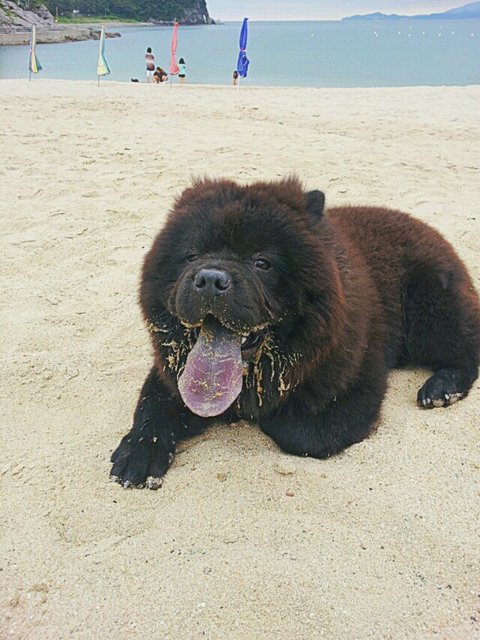 여름방학때 곰이 데리고 해수욕장 갔을때