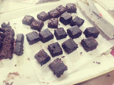 브라우니믹스를 전자렌지에 돌려서(전 물70ml넣었어여) 식혀준뒤 3x3으로 잘라주었어여 (좀 탄게 보이네요 ㅠㅠ..오븐 있으신분들은 직접 굽는게 더 맛있을것같아요!)