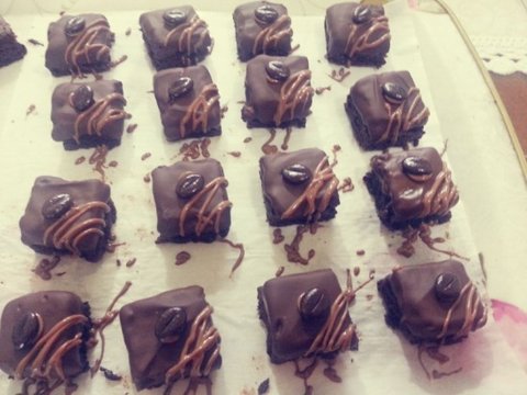 브라우니를 포크로 찍어서 초콜릿을 발라줬어여 그리고 서늘한곳에서 굳혀주세요 ㅎㅎ