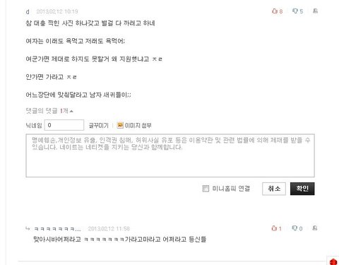 현재 여판에 있는 여군관련글 댓글