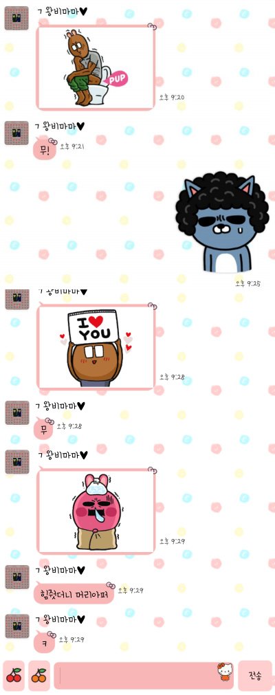 1.엄마가 화장실에서 응아를싸다가 심심했는지 나한테카톡이옴ㅋㅋ
