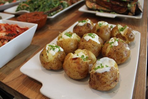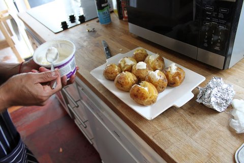 사워크림과 파슬리를 올린 통감자 구이에요.