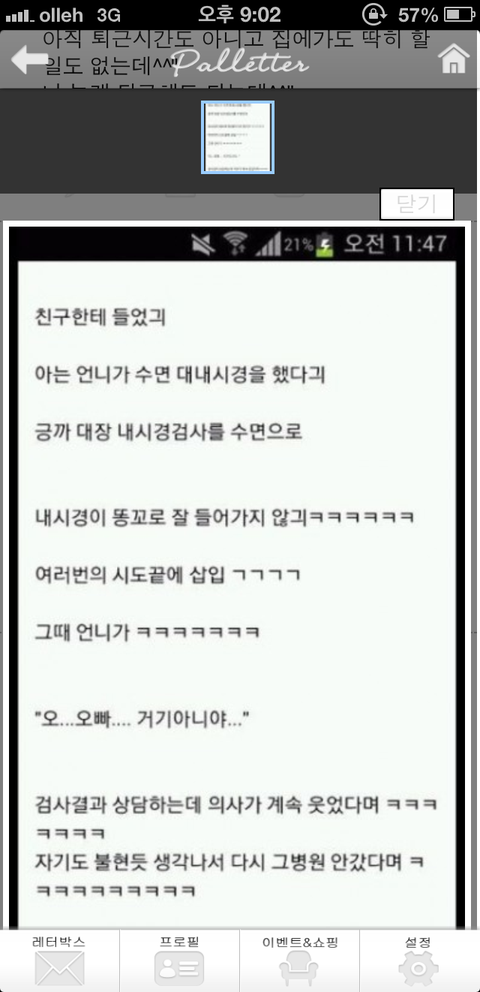 참고) 수면 내시경은 요즘 문제가 되는 포로포폴 주사를 맞고 하는거래요. 이걸 맞으면 헛소리를(?) 무의식중에 하게 된다고 하고요