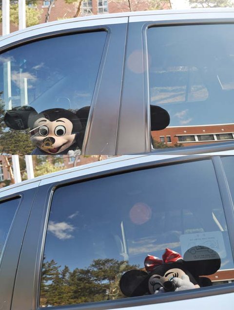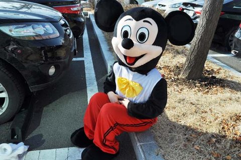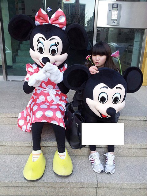 찡찡이가 미키 마우스, 글쓴이는 미니 마우스 탈을 쓰고.. 이벤트 해주러 !!!!!!!!!!!!!