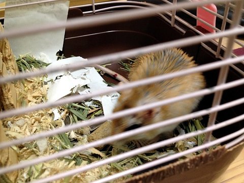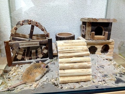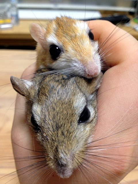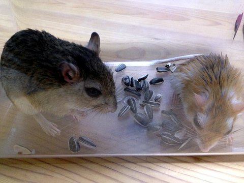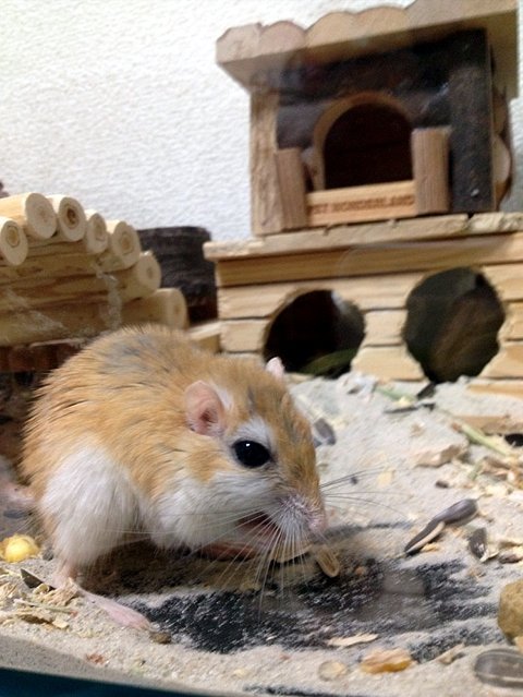 처음 왔을때 원래 살고 있었던 자이언트저빌(칭기와 스칸)과 합사를 시도했다가 텃세를 부리는 탓에