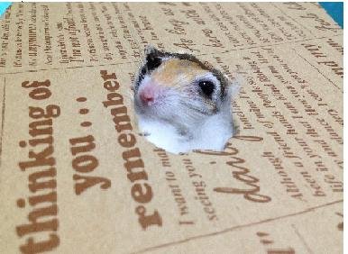 이건 처음 집에 온날 낯선 환경에 적응시키기위해 겉에 상자만 구멍을내서 조심스레 바깥구경을 할수 있게 해 줬습니다.생김새는 다른 저빌들과 약간 다릅니다.