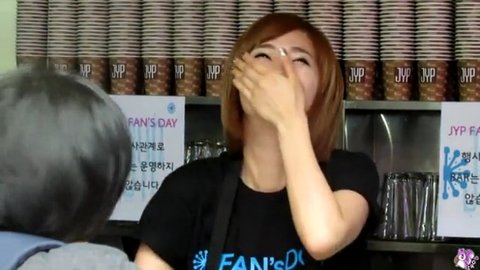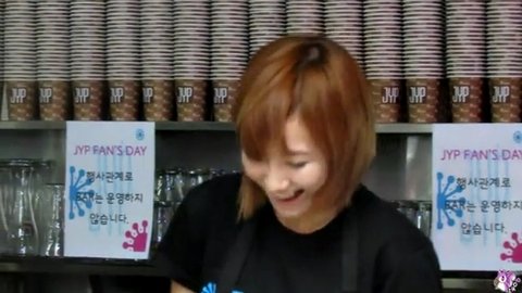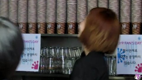 JYP 팬즈데이에서 팬들에게 커피를 타주던