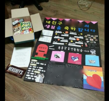 그리고 두번째 사진 아래에 선물이라는 종이 보임? ㅋㅋ 그거 내얼굴 넣어서 만든건데 부끄부끄함