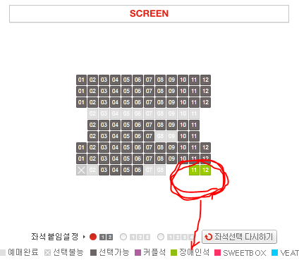 그렇지만, 좌석표에, 미리 예매하실 때 "장애인석" "이동식좌석"이라고 써져있잖아요?