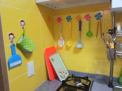 처음에 주방식기 걸어놨던곳... 타일에 제대로 안붙어서 자다가도 살림살이 깨지는소리에
