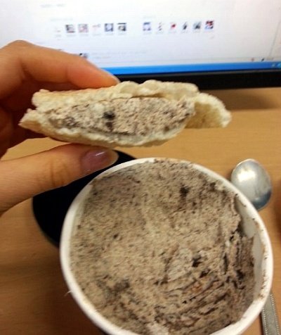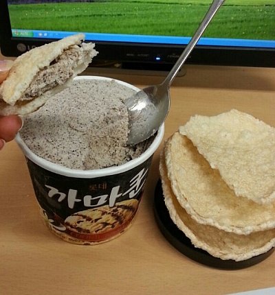 뻥티기에 아이스크림 넣고먹는 것을 봣는데 그냥 뻥티기에