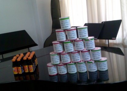 우리는 다같이 모여 다 먹고 빈 콜라캔을 탑으로 쌓기 시작함