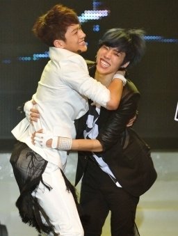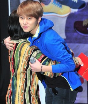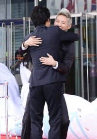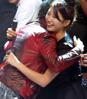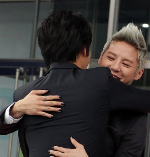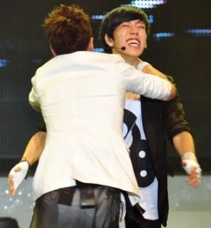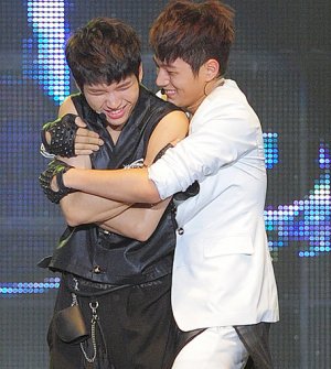 격한 포옹을 나누는 아이돌들