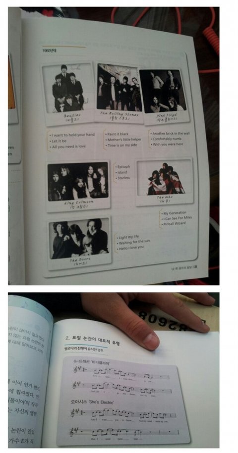우리학교음악책이건데ㅋㅋ빅뱅거짓말도있고 세대별로 인기있던가수들도있고 시험에이게나와서황당..