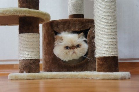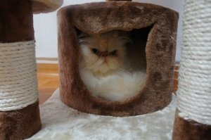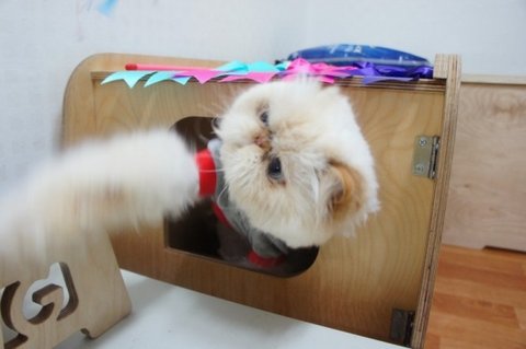 그러다 한계에 부딪혀 캣타워에 숨어버렸죠. 이놈시키 얼른 끝내게 나오니라!!