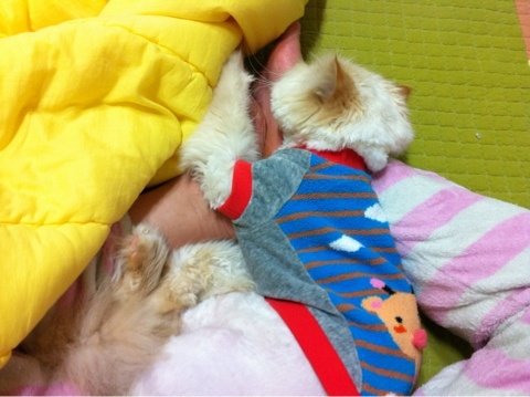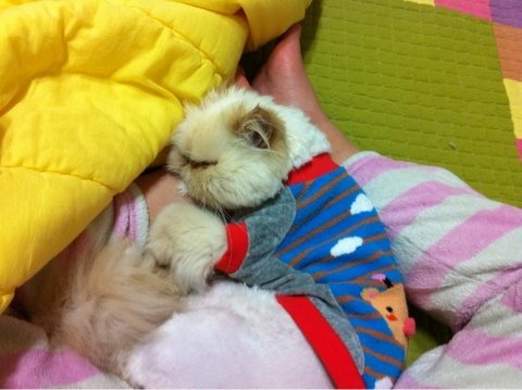 부스럭부스럭 거리더니 이러고 나타나서는 불편한 표정을 하고 있군하!!