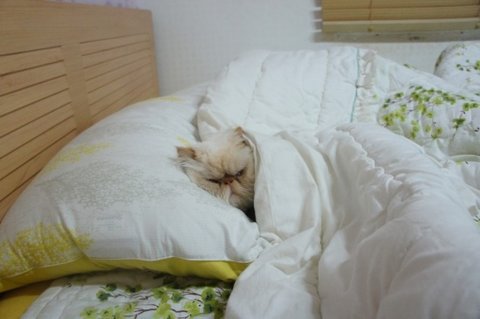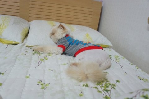 우다다 하고 놀다가 잘 때되면 자연스레 침대로 폴~짝!! 음...거긴 내자린데...