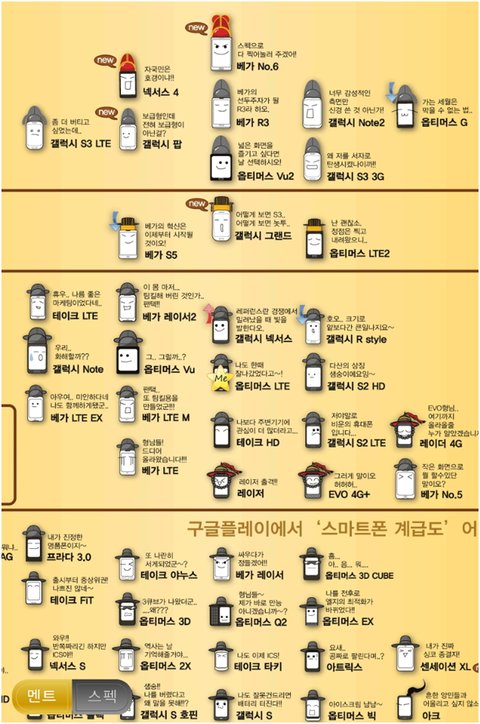 참고 하세요~ 안드로이드 스마트폰 계급도 베가 넘버6 1위