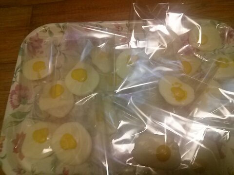 그포장지에 하나하나씩넣은모습입니다 보시면 이상하다,노른자가 병ㅇ 같다 란생각이 잇을실텐데요
