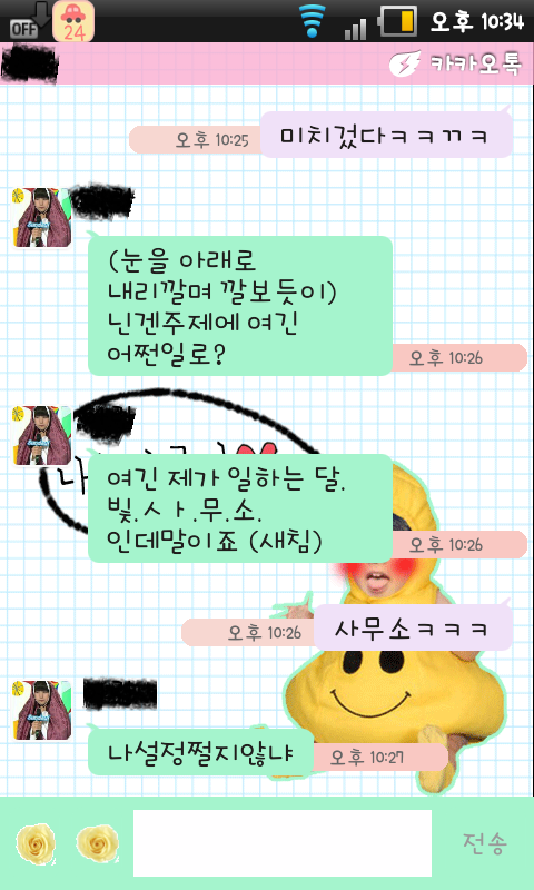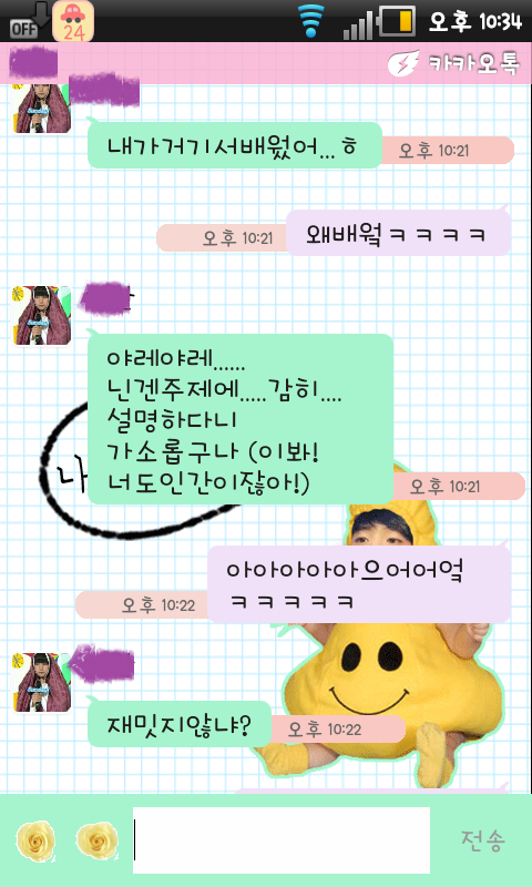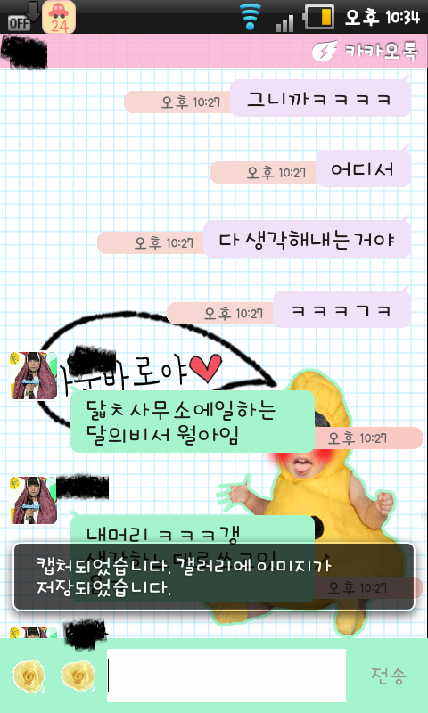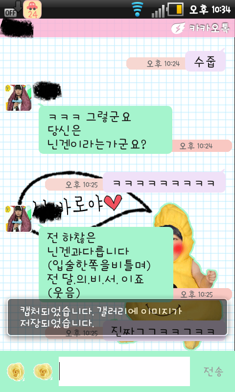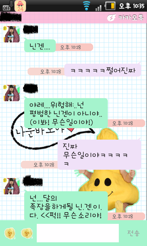 어제 갑자기 제 친구한테 카톡이날라옴.