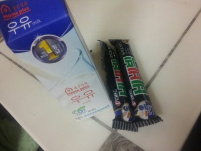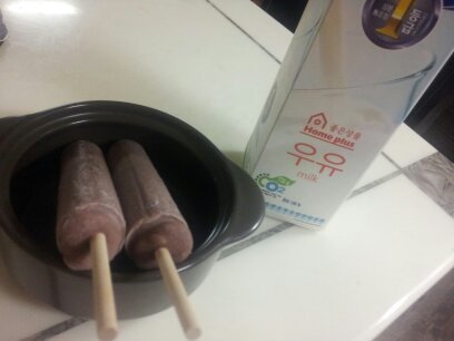 먼저 우유랑 비비비빅팥아이스크림을 준비해요