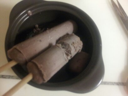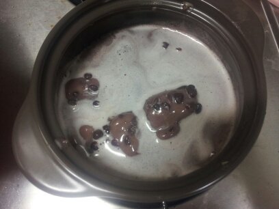 아이스크림을까서 냄비에 넣어요