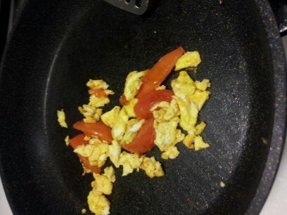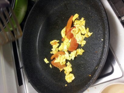 2분후에 어느정도 익으면 토마토를 같이 볶아요