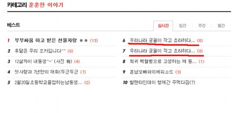 여러분의 관심덕분에 실시간 베스트에 내글이 뙇!