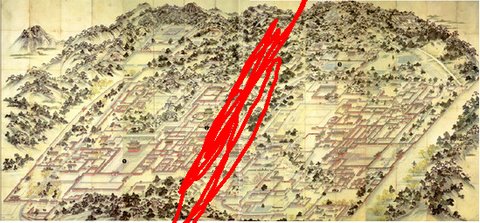 일본은...서로 이어져있는 두 개의 궐 중간에 도로를 내면서