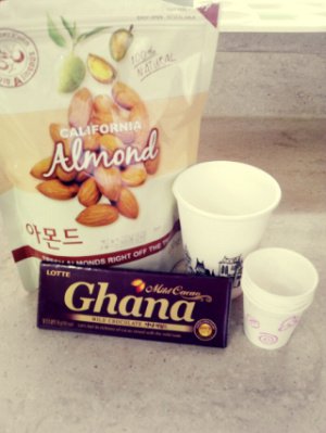 초콜릿 아무거나 / 종이컵(작은거) / 아몬드
