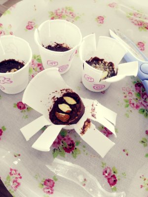자른 초콜렛 담고 가루낸 아몬드 뿌림