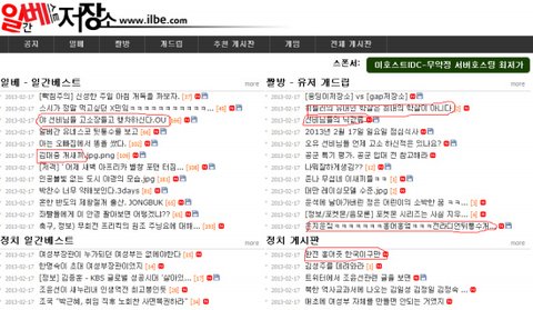 얼마전에는 오유를 해킹해서 운영자 아이디로 일베가 오유에서 활동하도록 차단을 막기도 했고요.