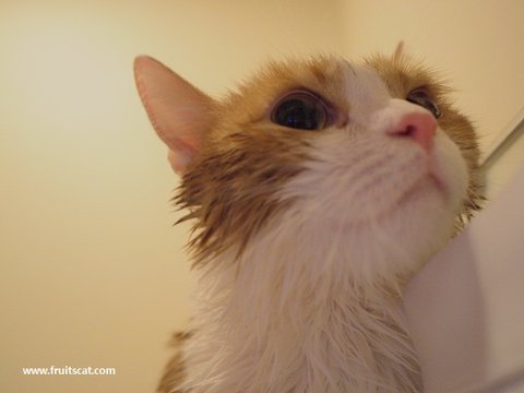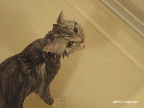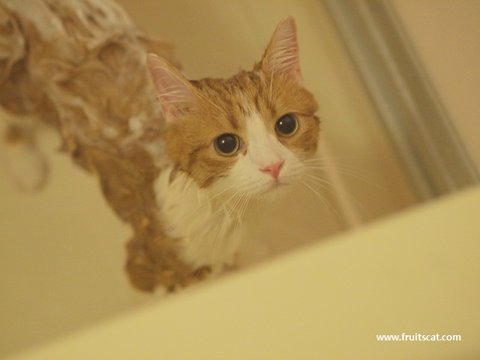 여기 일본 욕실은 건조기가 있어서 건조기로 따뜻하게 만든다음 고양이 투입!! 얼굴 이외의 몸 구석구석 물로 씻고, 샴푸~ 실리콘제 빗으로 구석구석 닦아준다음, 거품을 헹거주고, 물을 최대한으로 짜줍니다~.