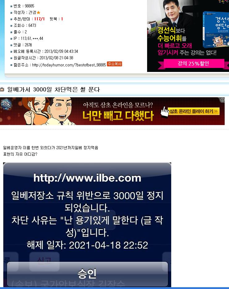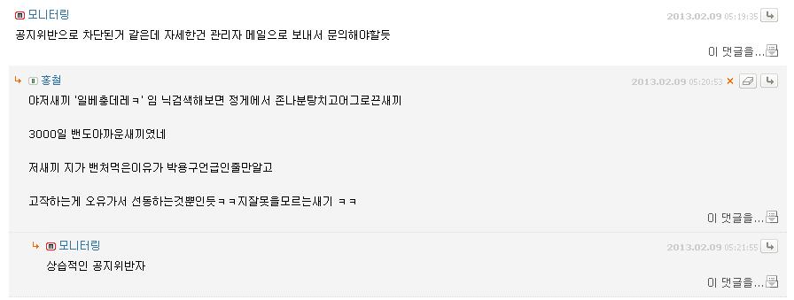 단지 박용9 를 언급했다는이유로 3000일밴 처먹었다는