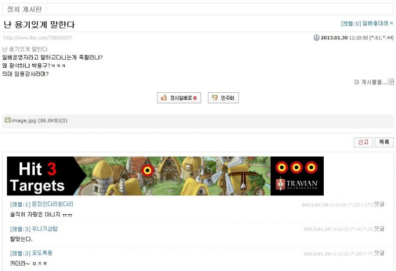 작성자 '일베충데레ㅋ' 작성글을 보자