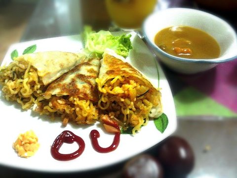 엄마가 마침 사오신 납작만두랑...냉장고청소하다가 찾은 양파,햄반쪽 넣고 어떻게든 되겠지 하고 간도 눈대중으로맞췄는데..ㅋㅋ