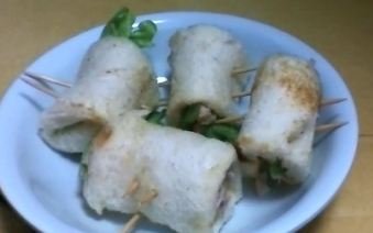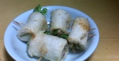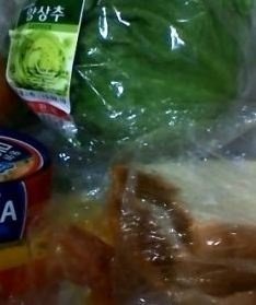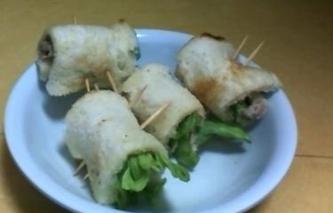 식빵에 숙성됀 참치를 바른후 양상추를 적당한 크기로