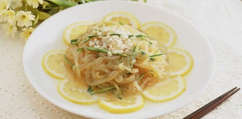 해파리는 염장이 되어 있으므로 물에 여러 번 씻어냅니다.